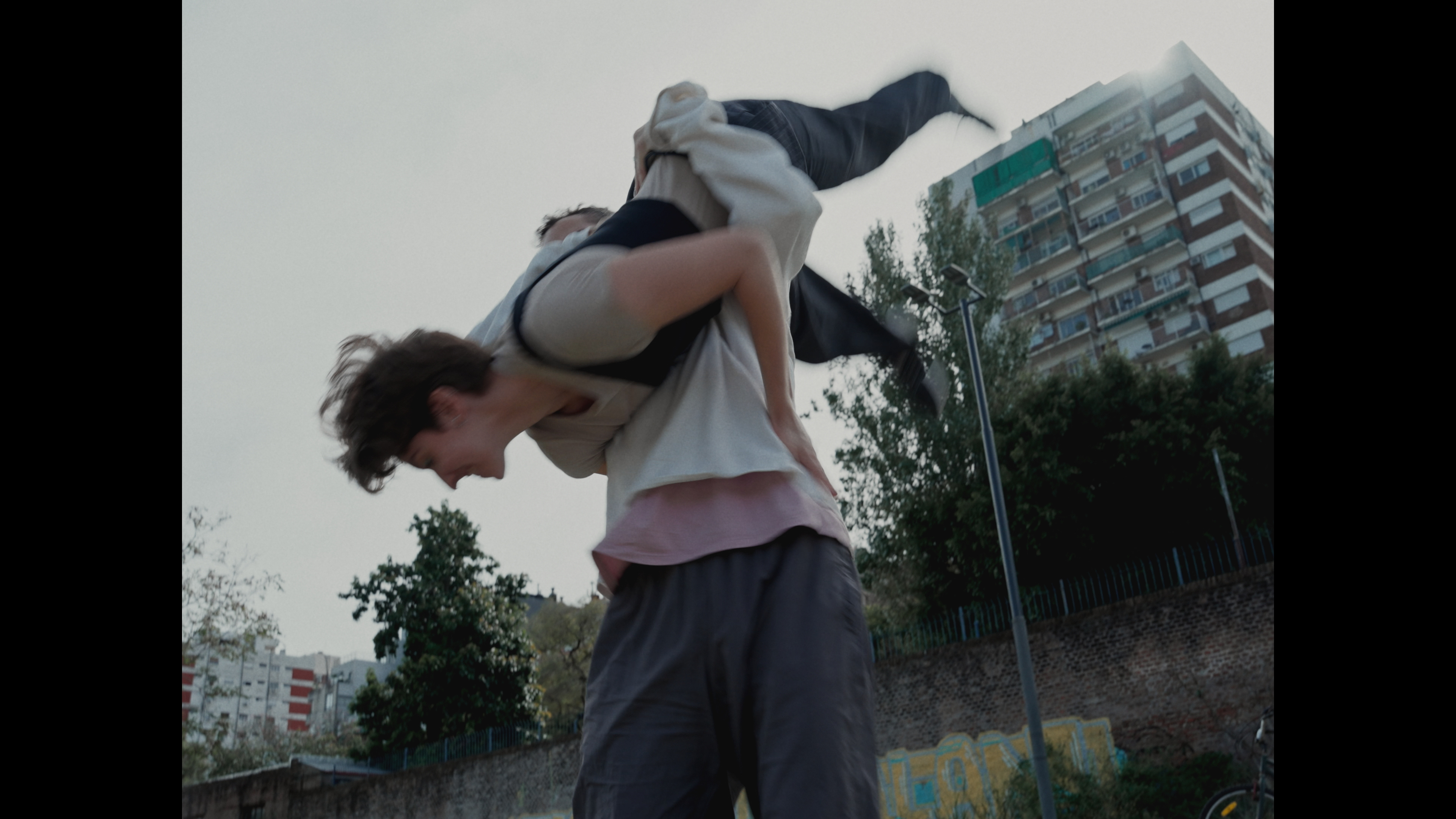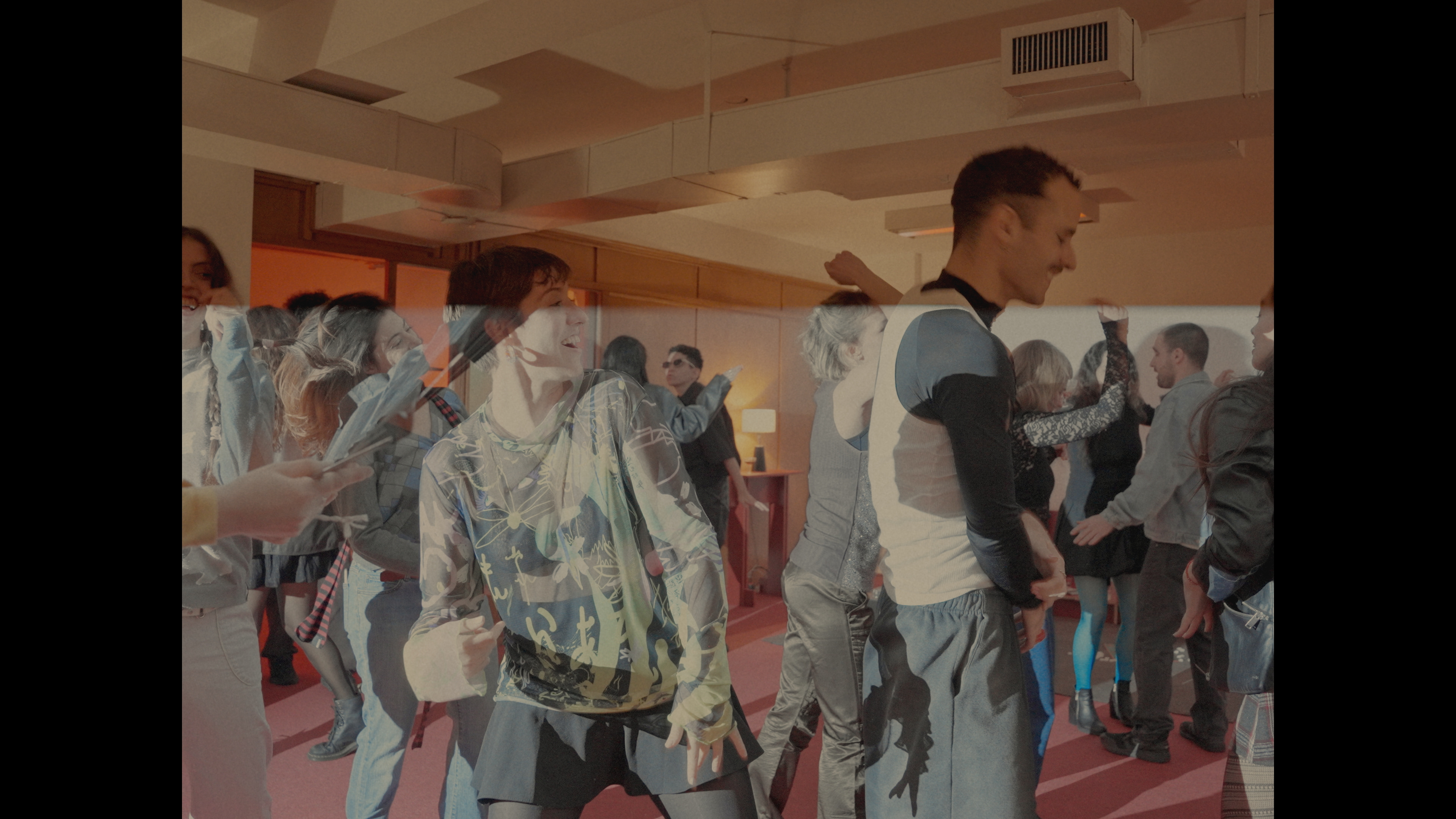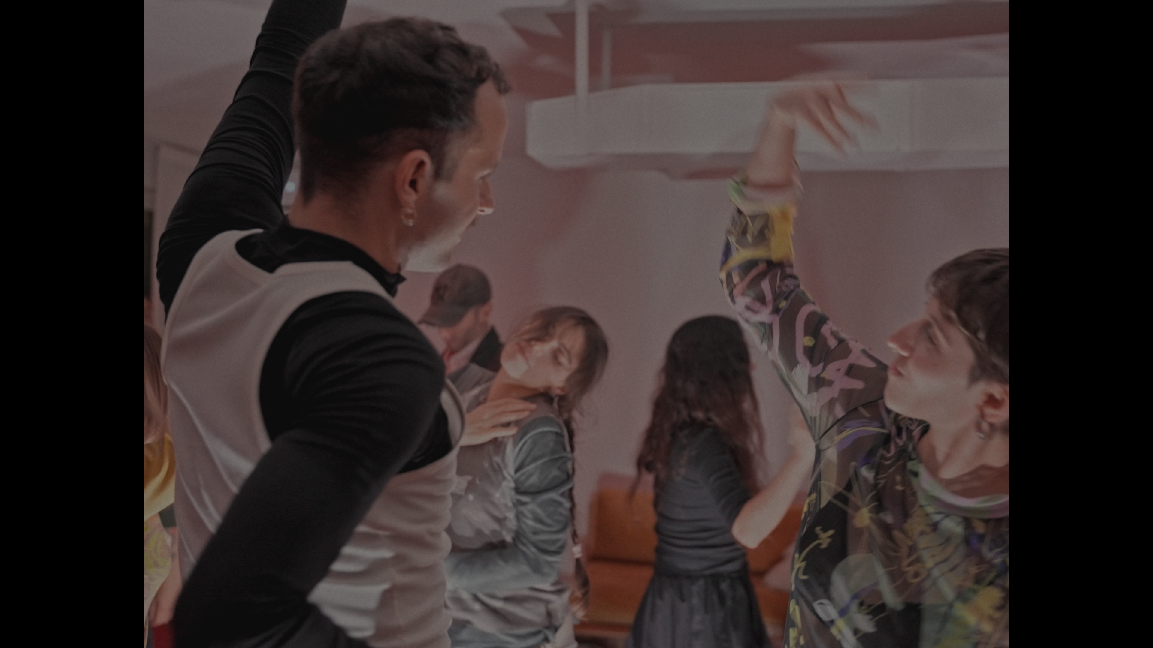La música posibilita el baile y sus movimientos traspasan hacia los escenarios anteriores. Se descubre un juego que, en el contexto cotidiano, permanece oculto.Dirección coreográfica. Ana Pellegrini y Javier Murphy