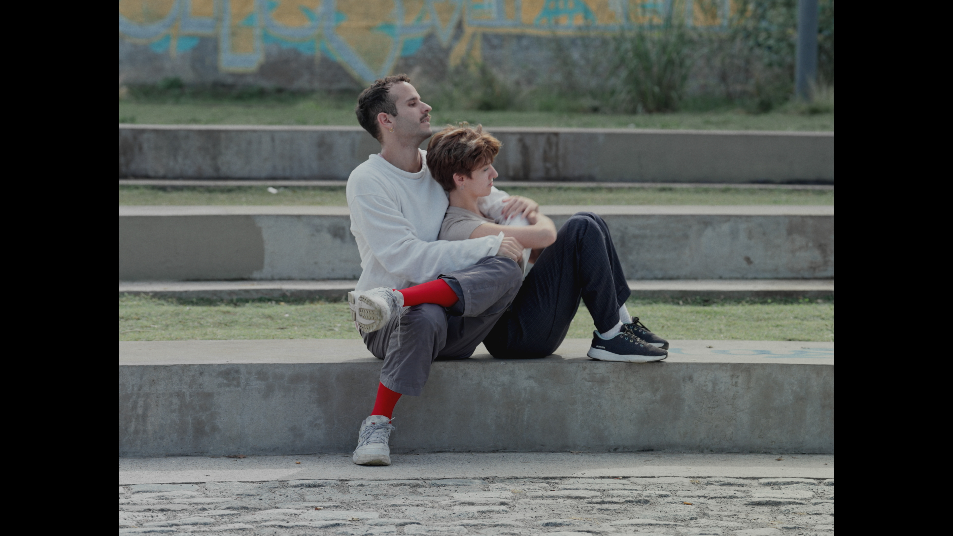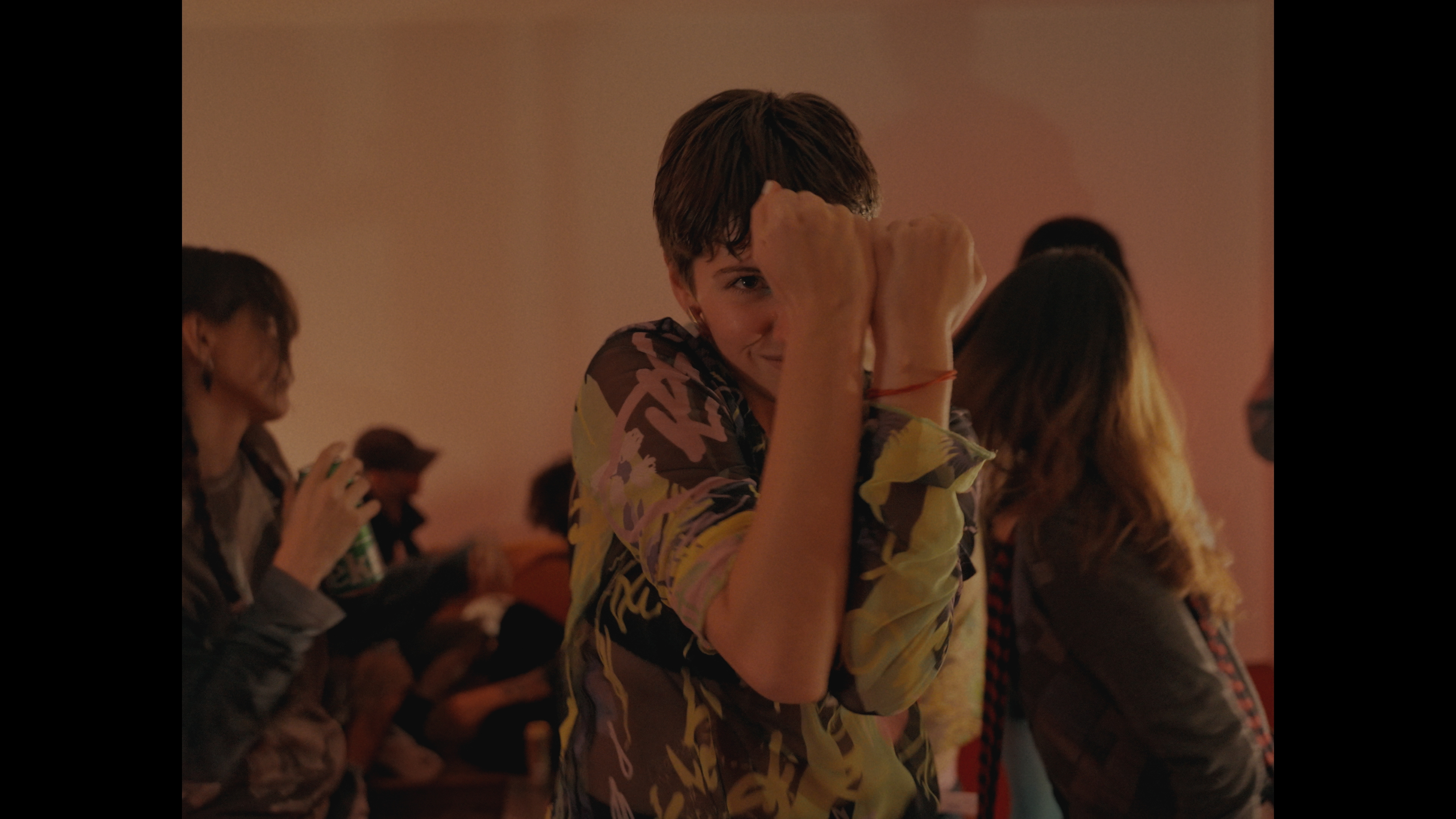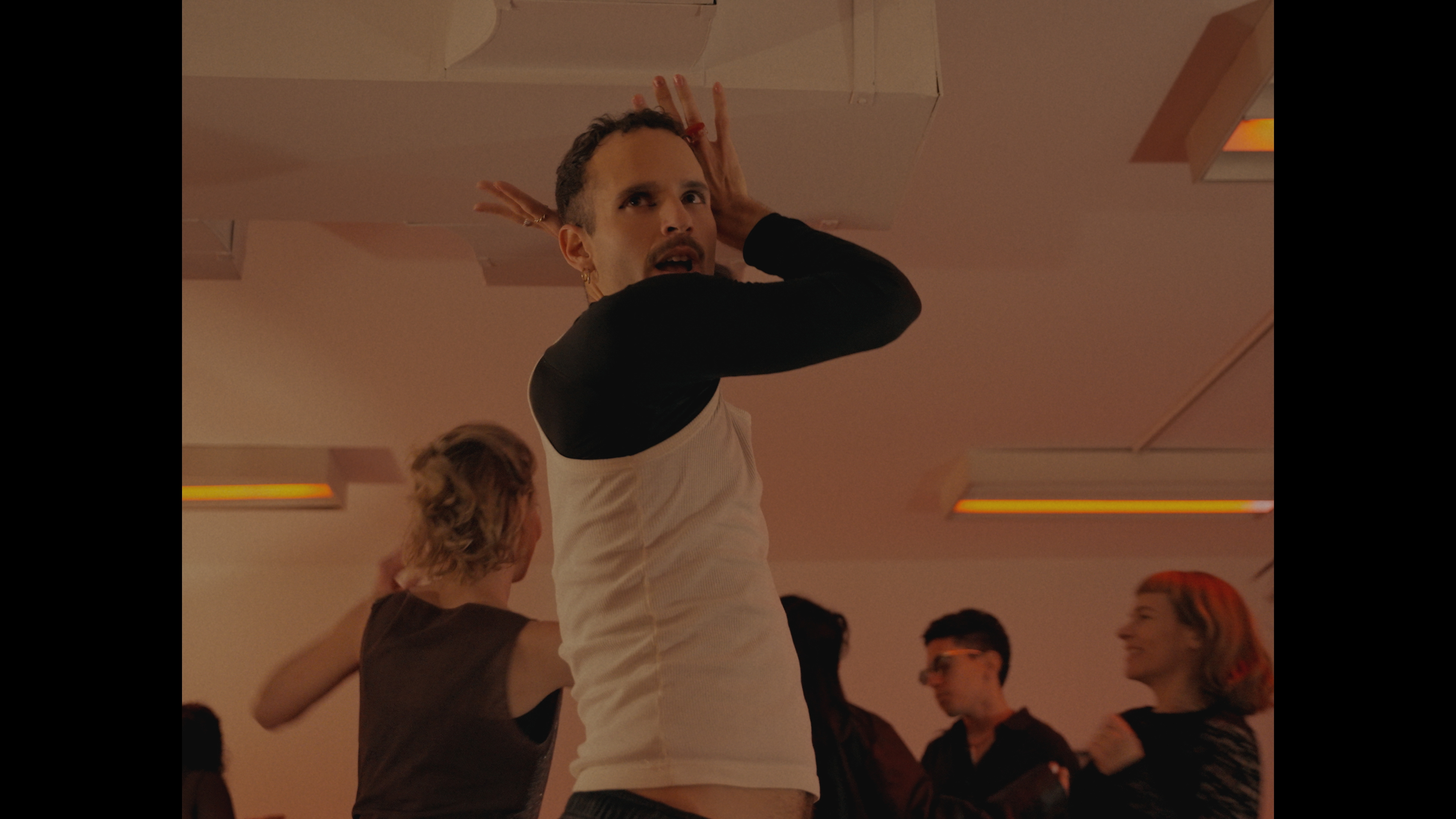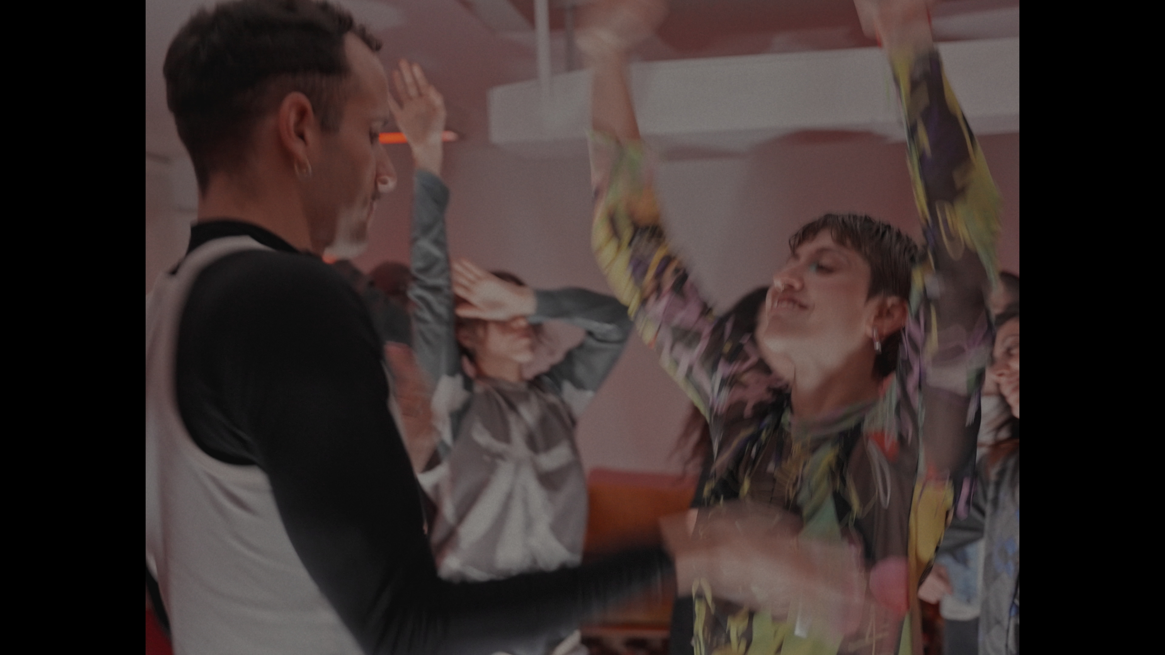 La música posibilita el baile y sus movimientos traspasan hacia los escenarios anteriores. Se descubre un juego que, en el contexto cotidiano, permanece oculto.Dirección coreográfica. Ana Pellegrini y Javier Murphy